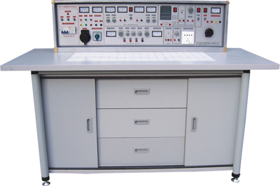 (一) 實驗桌:學生實驗桌12張,一桌二座,實驗桌外形尺寸為160×70×80cm。桌子中央配置九孔電路插板,電路板注塑而成,表面布有九孔成一組相互聯(lián)通的插孔,元件盒在其上任意拼插成實驗電路。元件盒盒體透明直觀,內(nèi)裝電阻、電容、電感、二極管、三極管、場效應管、可控硅等元件來完成原理實驗。內(nèi)裝元件一目了然,盒蓋印有不會褪色元件符號,線條清晰美觀。盒體與盒蓋采用較科學的壓卡式結(jié)構(gòu),維修、拆裝方便。實訓項目由二十幾套實訓電路板和相應元器件來完成。每張操作桌配有一粒膠皮板,保護通用電路板和桌面(如需要在桌上放置電動機,焊接等) 桌子下部是元器件儲存柜,放置實驗元件、器材、工具等。