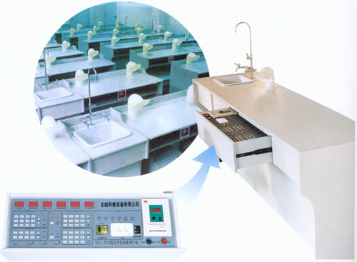 7、 教師電源:采用教學安全總電源 , 設有抽屜式教師控制臺。配有漏電自動保護裝置。教師在講臺上任意控制風機運行、風量大小、學生電源及給排水控制。 ( 教師演示臺采用國內(nèi)的觸摸式和按鈕式兩供用戶選擇 )
