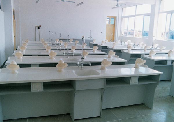 9、 實驗臺桌:臺面采用人造石或耐腐蝕理化板、彎曲防火板,柜身采用三聚氰胺浸漬飾面板。