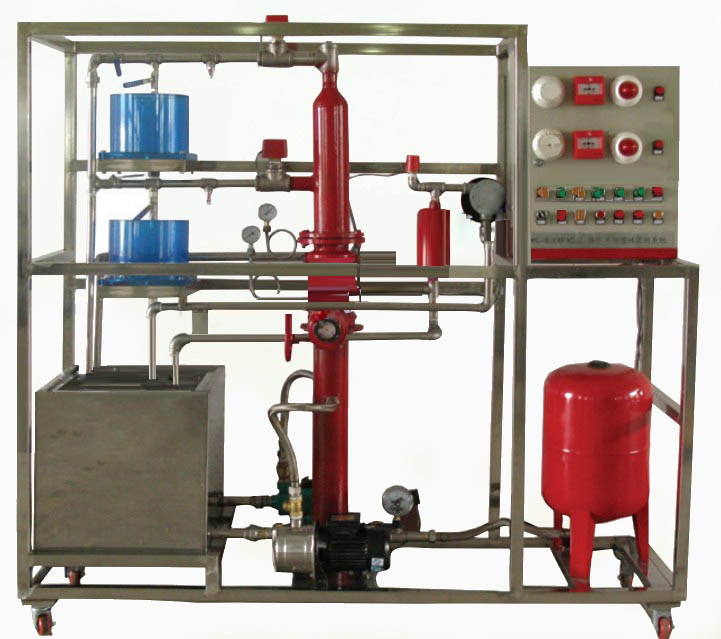模型框架和水箱等主要部件全部使用不銹鋼器件,保證不生銹、不易老化,可以模擬兩層大樓噴淋滅火系統(tǒng);模型系統(tǒng)主要由噴淋水泵、氣壓罐、濕式報(bào)警閥、水力警鈴、延時(shí)器、壓力開關(guān)、水流指示器、封閉式噴頭、試驗(yàn)閥、火災(zāi)探測器、火災(zāi)報(bào)警器等典型噴水滅火設(shè)備構(gòu)成,能生動模擬大樓內(nèi)水滅火系統(tǒng)的典型結(jié)構(gòu)。